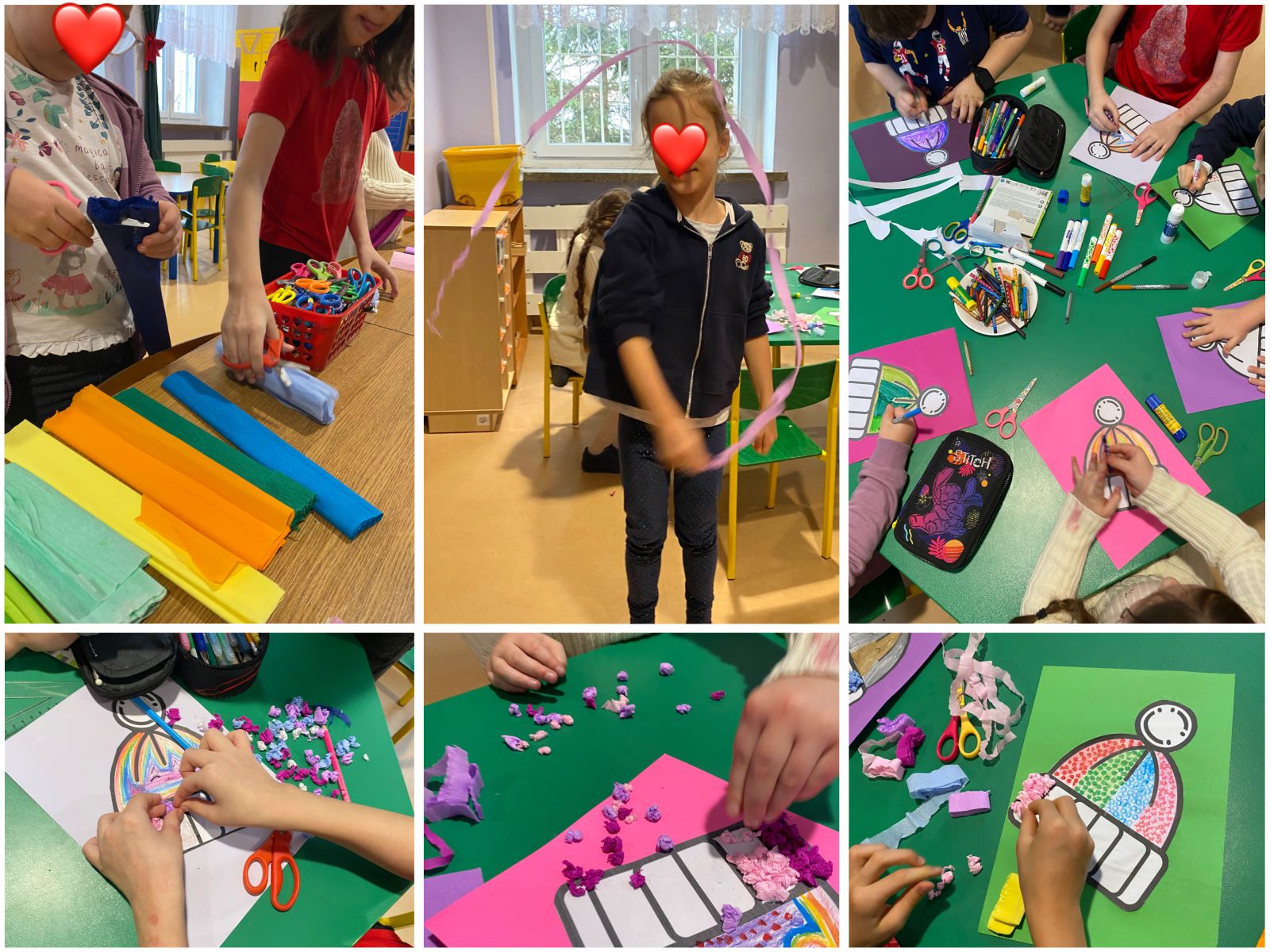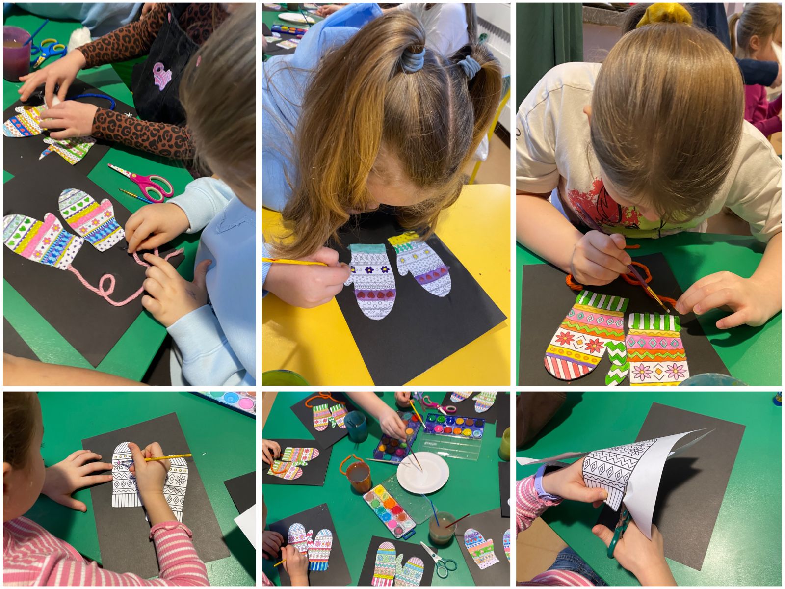 Jeszcze przed feriami, podczas porannego oczekiwania w świetlicy na rozpoczęcie zajęć lekcyjnych, uczniowie klas drugich wykonali projekty niezbędnego elementu zimowej stylizacji - rękawiczek. Pierwszego dnia po zimowym wypoczynku powstały z kolei równie kolorowe projekty czapek. Była to okazja nie tylko do rozwijania kreatywności i ćwiczenia motoryki małej, ale również do rozmowy na temat właściwego dbania o zdrowie w trudnym, mroźnym czasie.