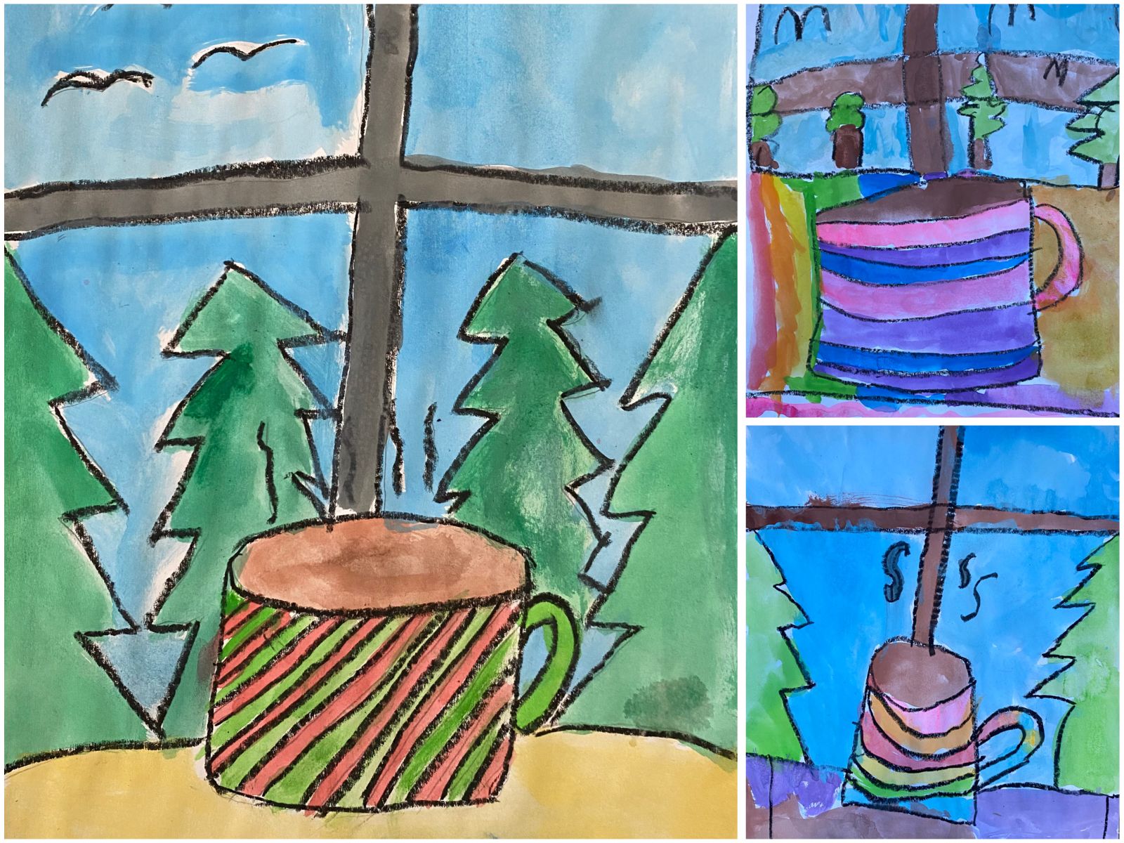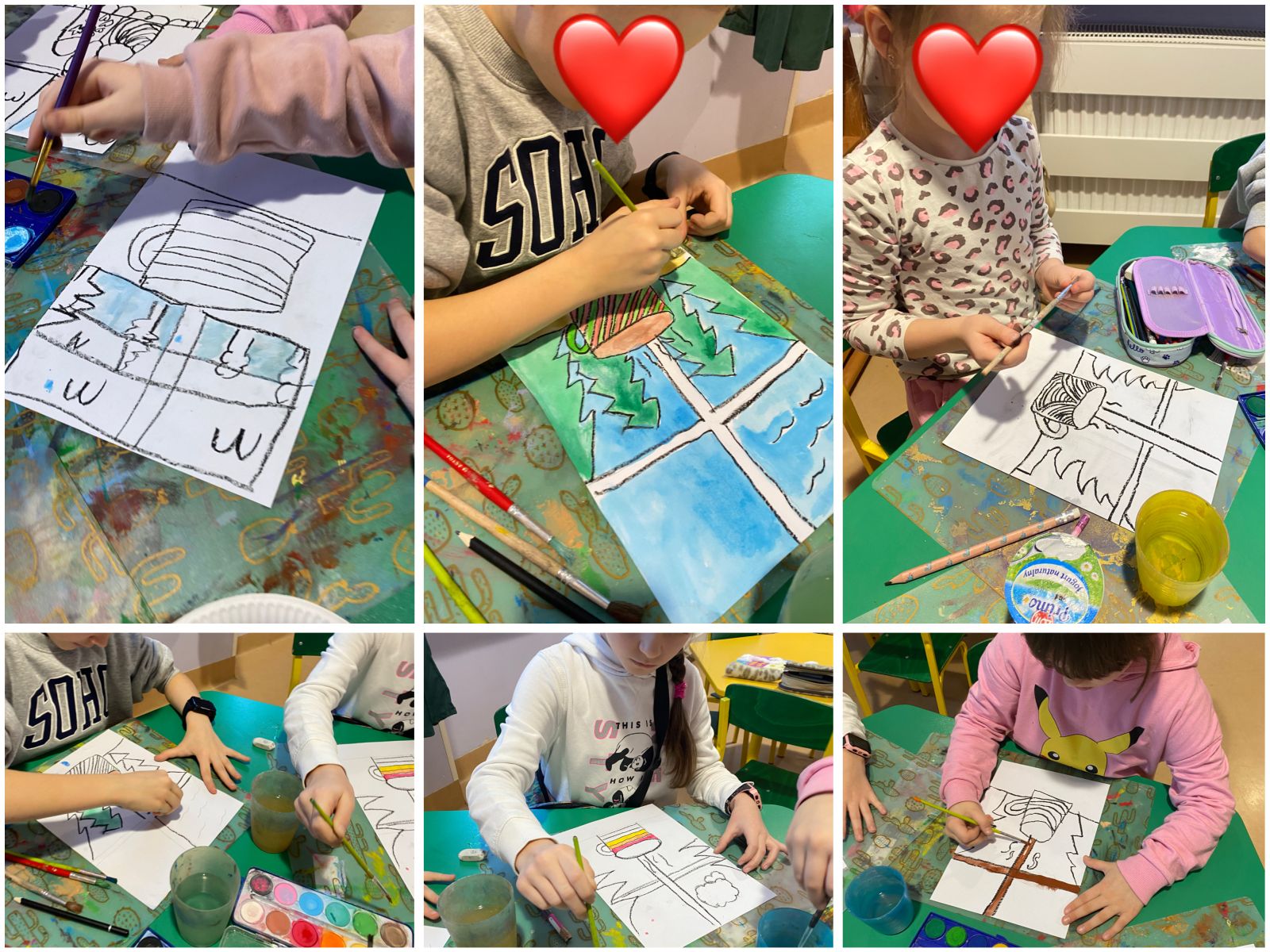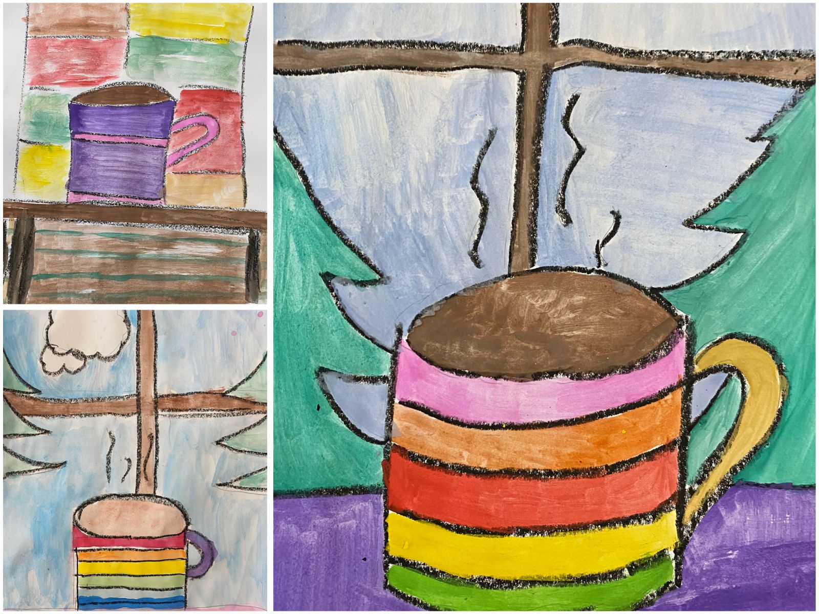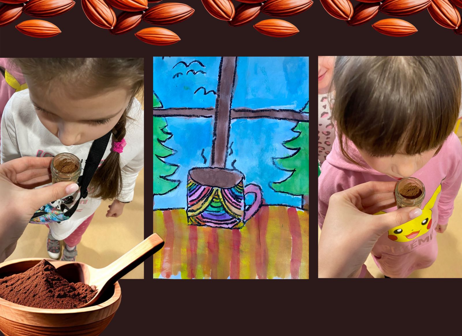 Kolejny poranek w świetlicy umiliła nam prosta praca plastyczna. Świetliczaki po raz kolejny sięgnęły po dobrze znaną i lubianą technikę plastyczną – szkic wykonany czarną pastelą, który następnie został wypełniony farbami akwarelowymi. Tym razem w centrum naszej pracy umieściliśmy kubki z rozgrzewającym kakao. Poznaliśmy również liczne ciekawostki na temat tego wspaniałego napoju. Drobną atrakcją było pobudzenie zmysłu węchu – zapach kakao przywędrował do nas aż z dalekiego Peru i wzbudził wiele pozytywnych emocji.