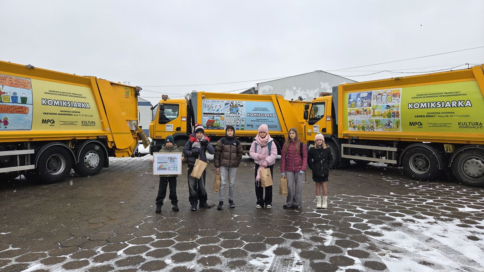 Prace uczniów zostały powiększone i zamieszczone na burtach trzech śmieciarek.