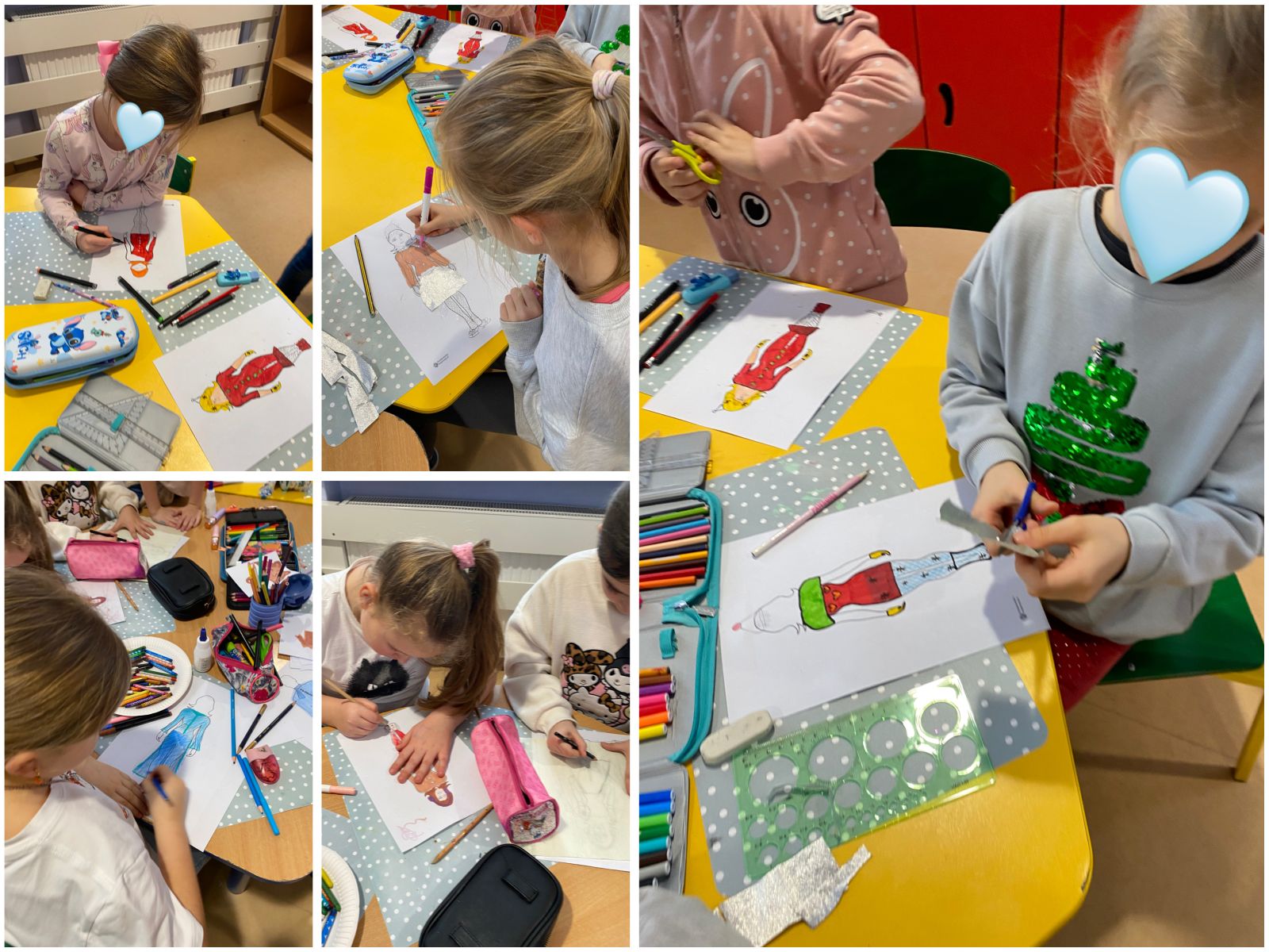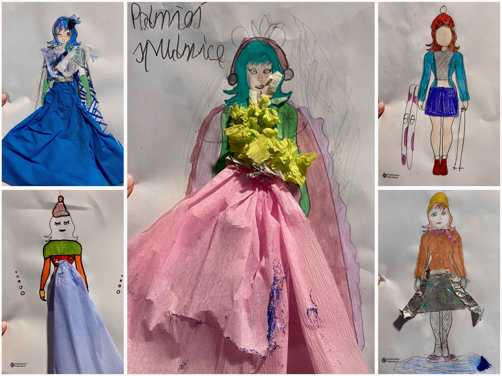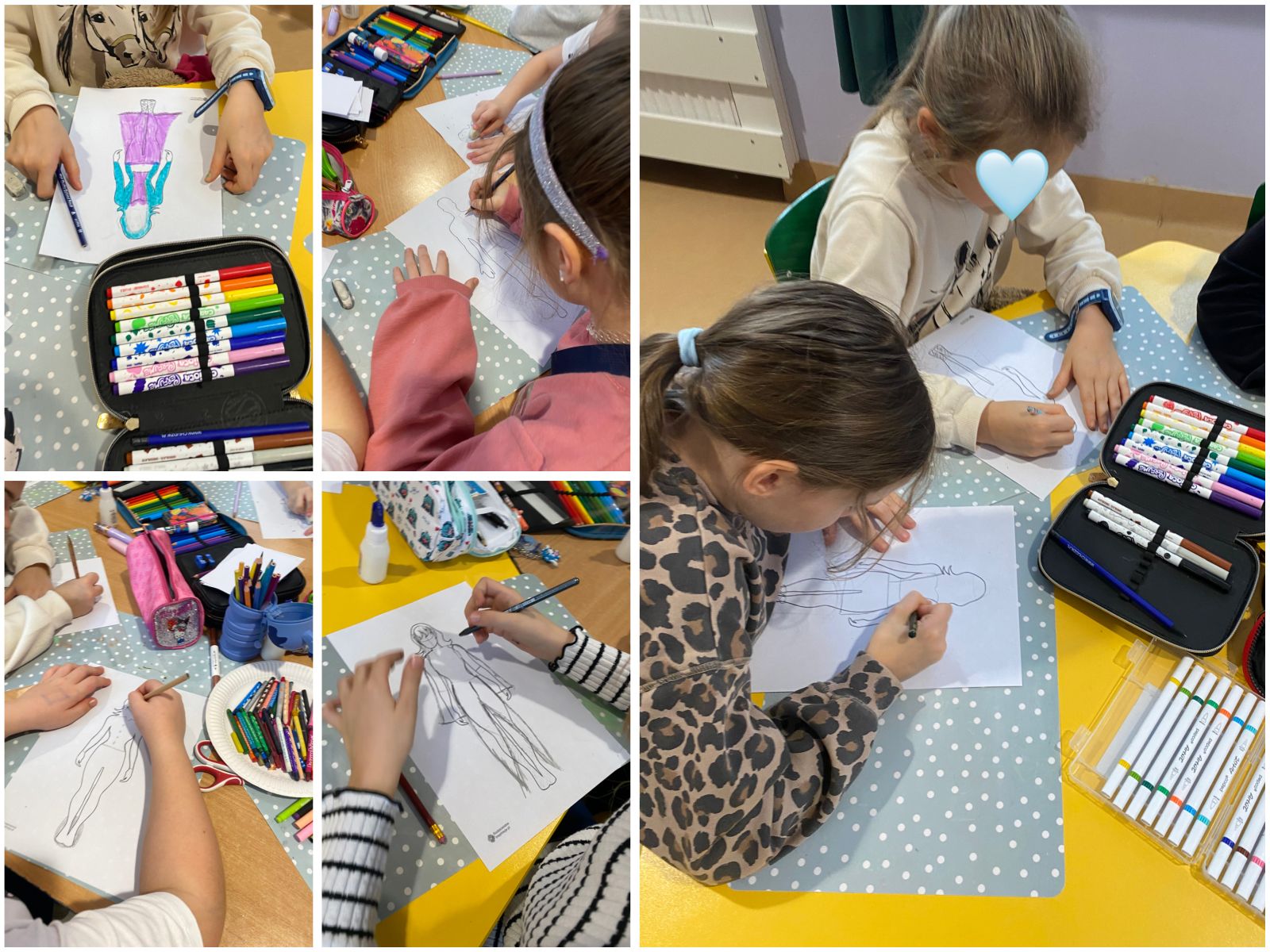 Mroźna, zimowa aura oraz śnieżne krajobrazy za oknami stały się inspiracją do stworzenia wyjątkowych projektów zimowych stylizacji. Chętni uczniowie, pracując na przygotowanych szkicach sylwetek, za pomocą kredek, mazaków oraz kolorowej bibuły dali upust swojej wyobraźni i kreatywności. Powstały barwne, nietuzinkowe prace. Autorzy najciekawszych projektów zostali nagrodzeni drobnymi upominkami.
