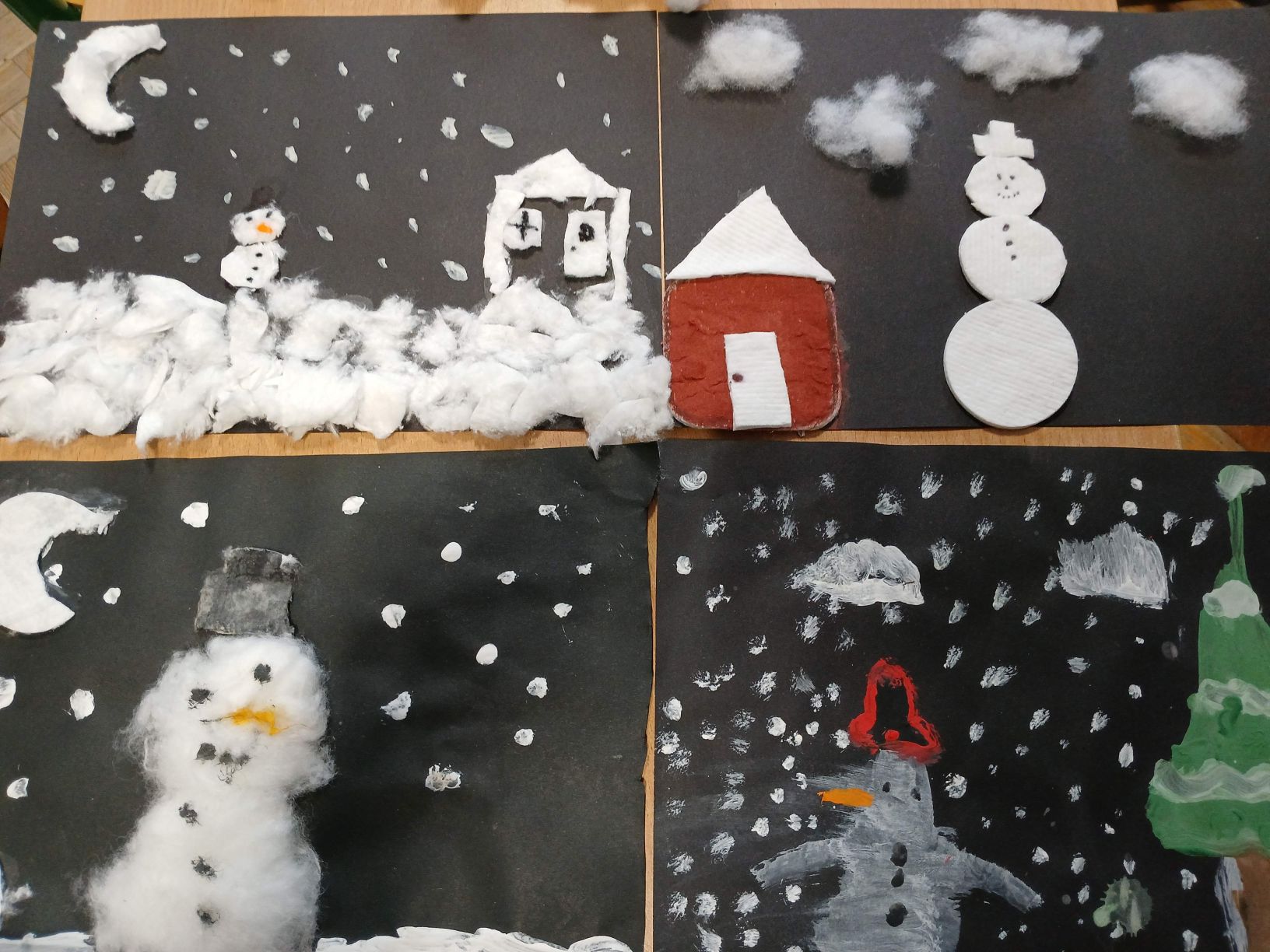 Każda klasa przedstawiła swoją wizję zimy, wykorzystując inną technikę plastyczną. Uczniowie tworzyli prace metodą „mokre na mokrym”, przygotowywali gazetowe wydzieranki oraz wykonywali kompozycje przedstawiające białą zimę na czarnym tle. Powstałe prace zachwycały pomysłowością, estetyką oraz starannością wykonania.