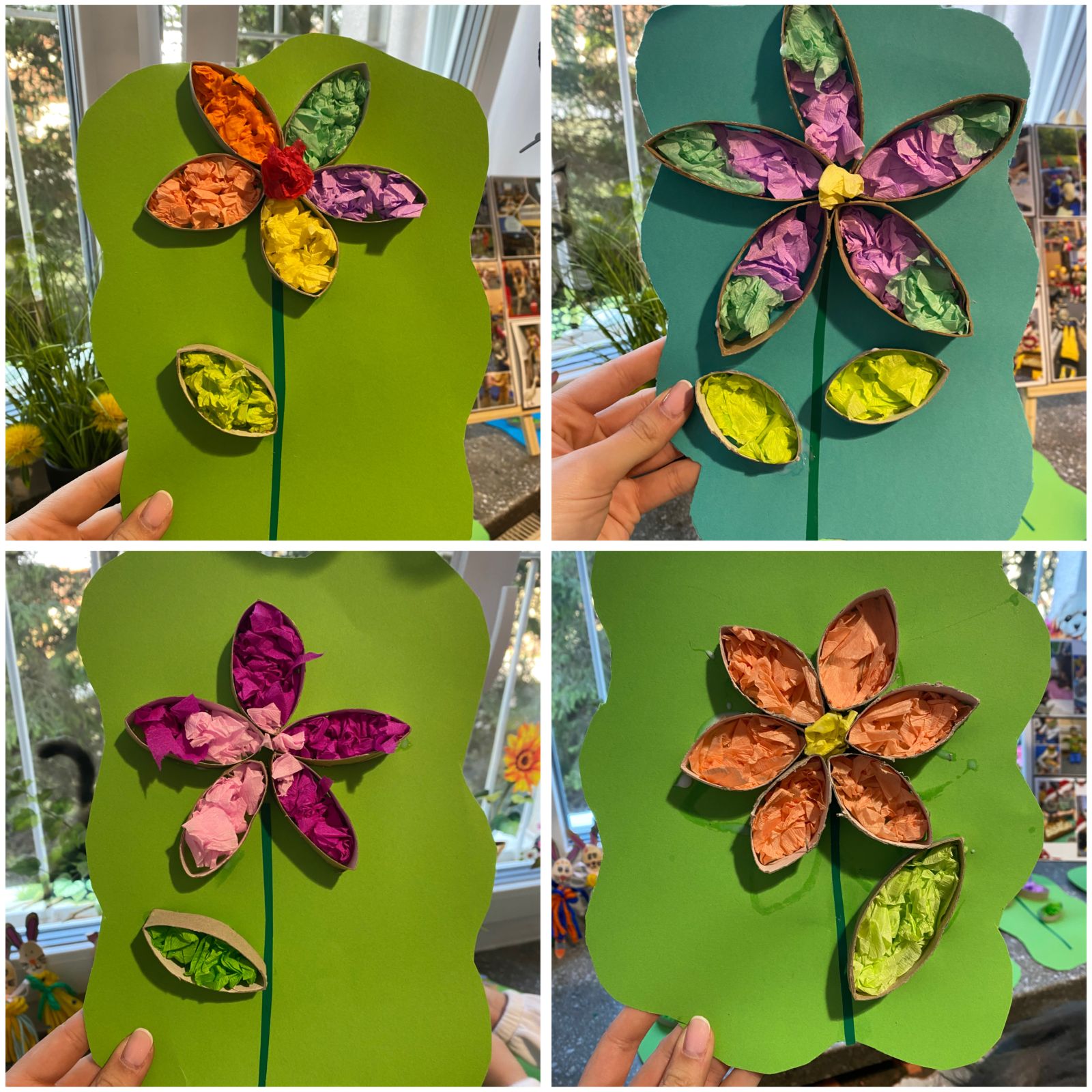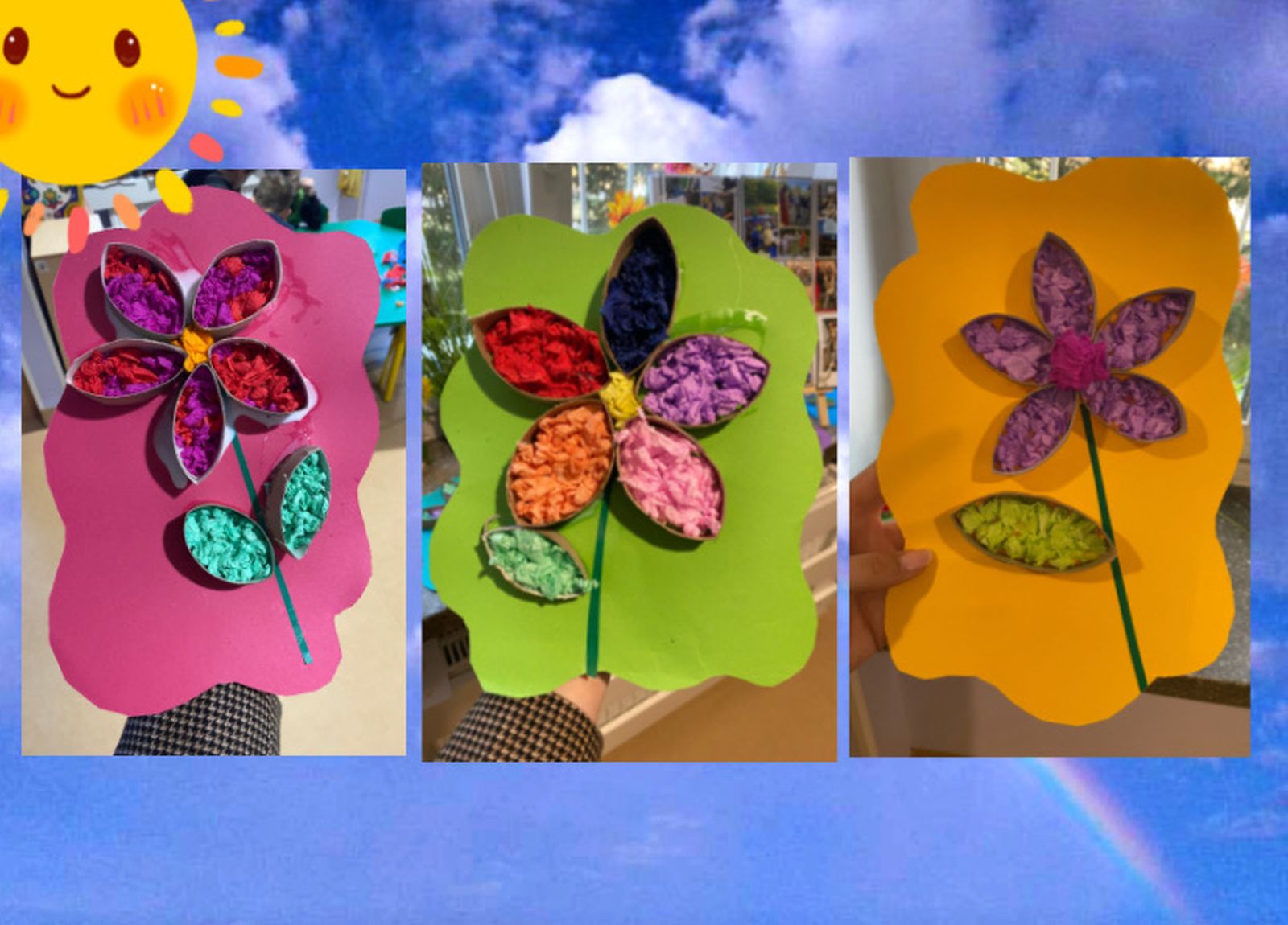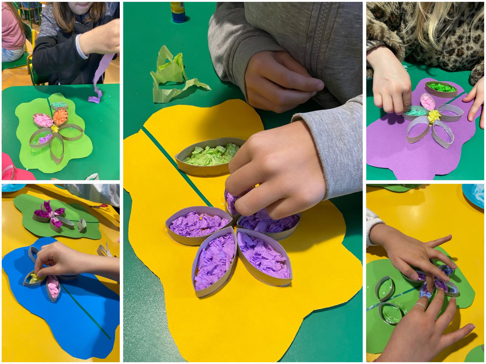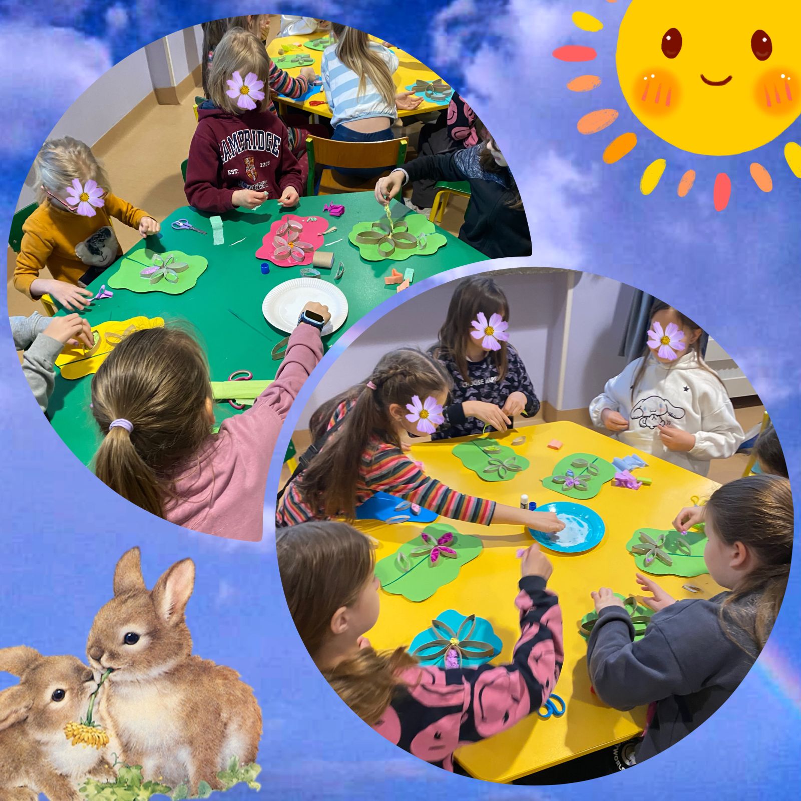 Środowy poranek spędziliśmy na wykonaniu prostej pracy plastyczno - technicznej. W centrum naszej twórczości znalazł się uniwersalny symbol piękna, życia i natury, czyli kwiaty. Do ich wykonania wykorzystaliśmy pocięte na kawałki tekturowe rolki, kolorową bibułę oraz odrobinę kolorowego papieru.