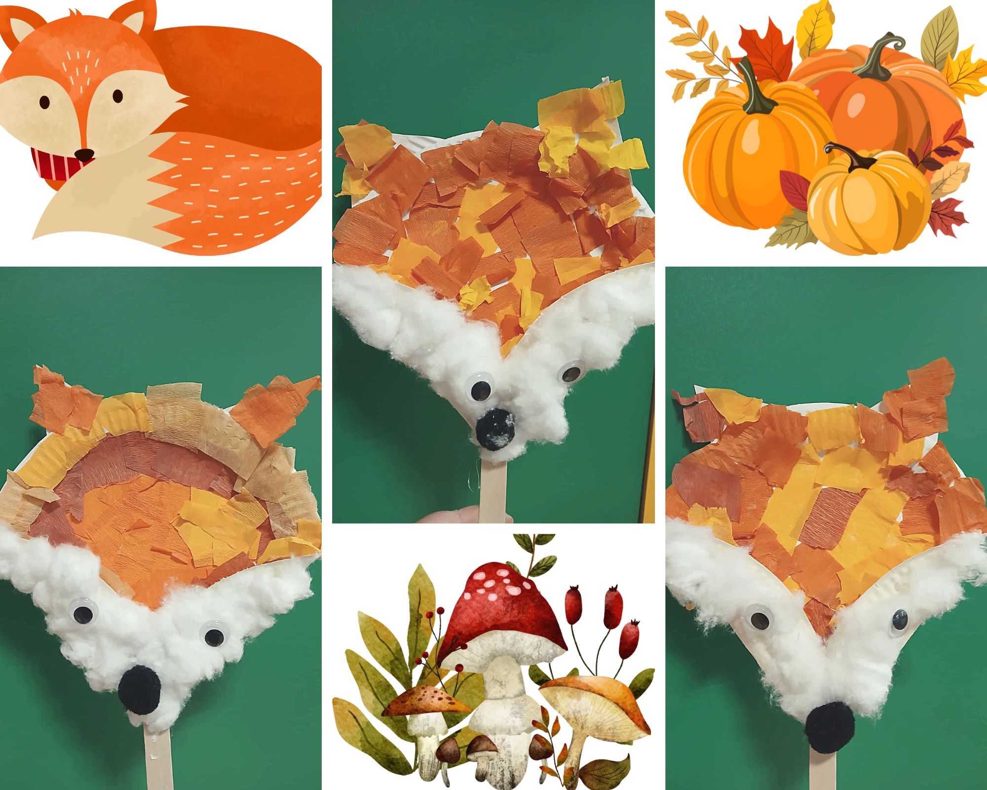 Rozmawialiśmy o lisie i jego zachowaniu w czasie pór roku. O tym, jak kolorystycznie zmienia się jego futerko i jak wygląda polowanie. Dzieci wykonały pracę plastyczno-techniczną przedstawiającą lisa wykorzystując papierowy talerzyk, bibułę i watę.