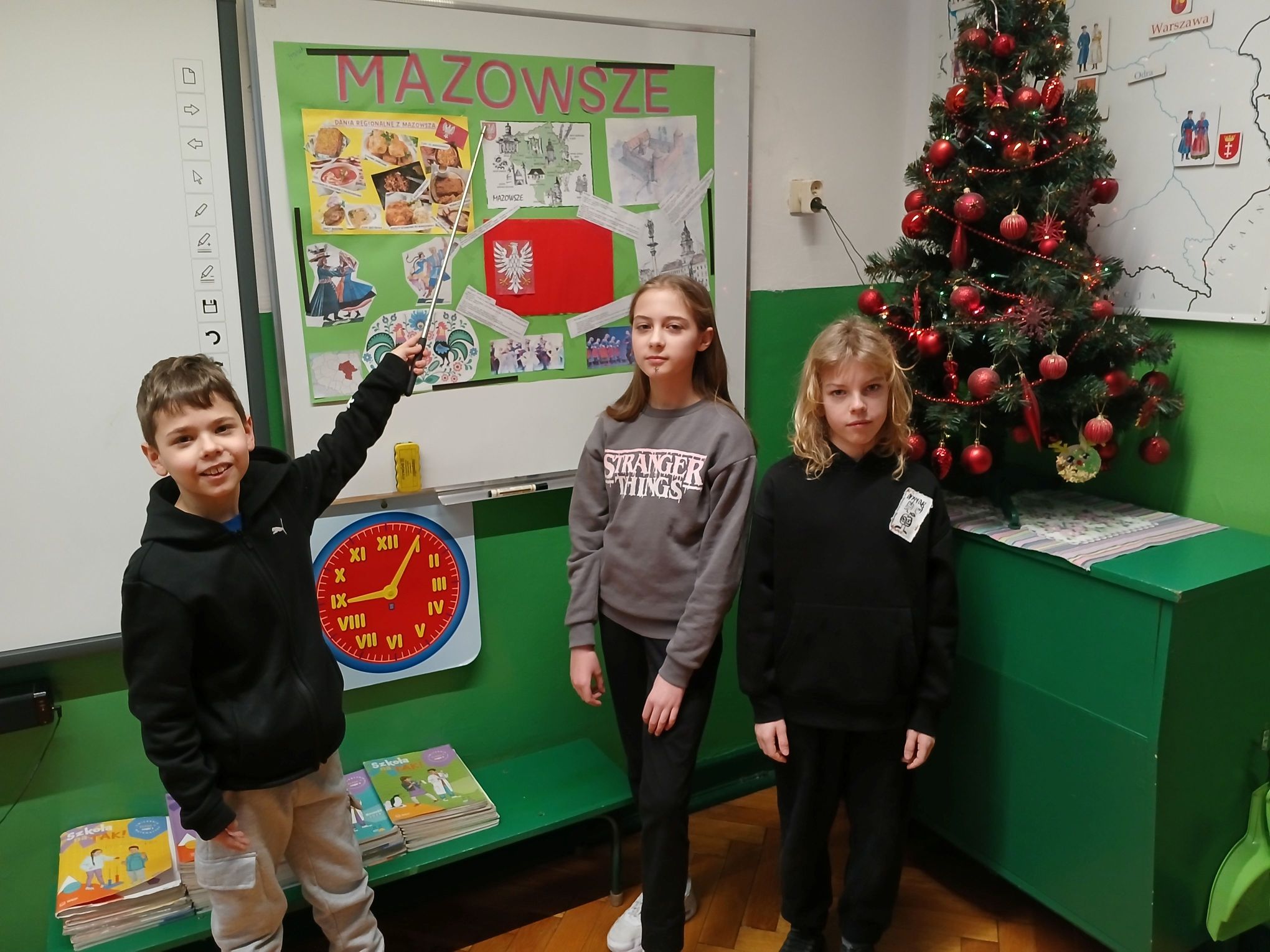 Uczniowie klasy III a pracowali metodą projektu, realizując temat Regiony kulturowe Polski. Dzieci samodzielnie przygotowały plakaty, na których zaprezentowały najważniejsze informacje dotyczące wybranych regionów. Następnie przedstawiły efekty swojej pracy koleżankom i kolegom z klasy. Zajęcia były ciekawe i konkretne, a uczniowie chętnie współpracowali ze sobą, dzieląc się zdobytą wiedzą i doświadczeniami.