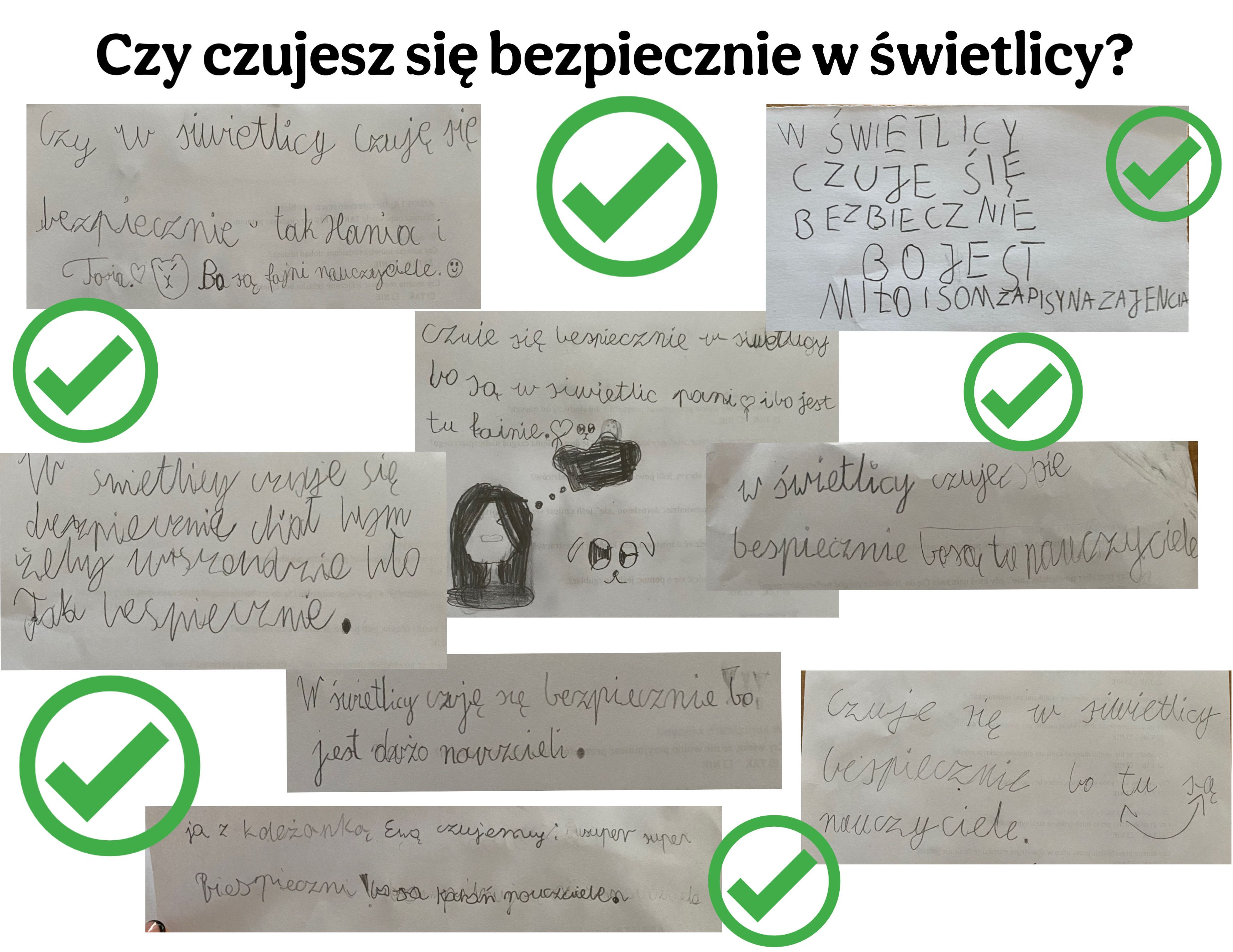 W kontekście znanego wszystkim sformułowania „o bezpieczeństwie nigdy za wiele”, dzieci uczęszczające do szkolnej świetlicy regularnie omawiają i przypominają sobie zagadnienia związane z różnymi obszarami zagrożeń oraz odpowiedniej profilaktyki. Podczas ostatnich dni mieliśmy okazję rozmawiać na temat pojęcia bezpieczeństwa osobistego, a także tego, jak przygotować się na sytuacje wymagające wezwania odpowiednich służb. Uczniowie podzielili się również własnymi refleksjami dotyczącymi tego, czy świetlica jest dla nich miejscem przyjaznym i czy czują się w niej bezpiecznie. Zajęciom towarzyszyły tematyczne aktywności plastyczne oraz wspólne czytanie wybranej literatury.