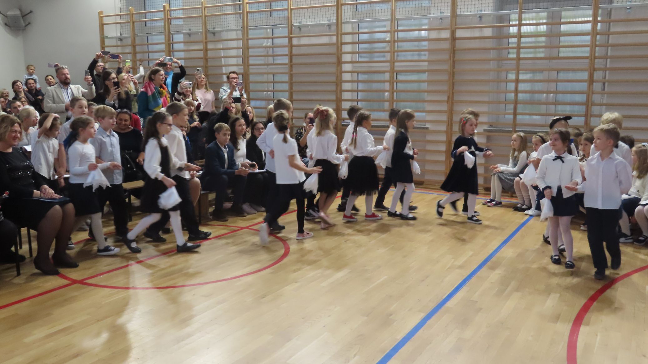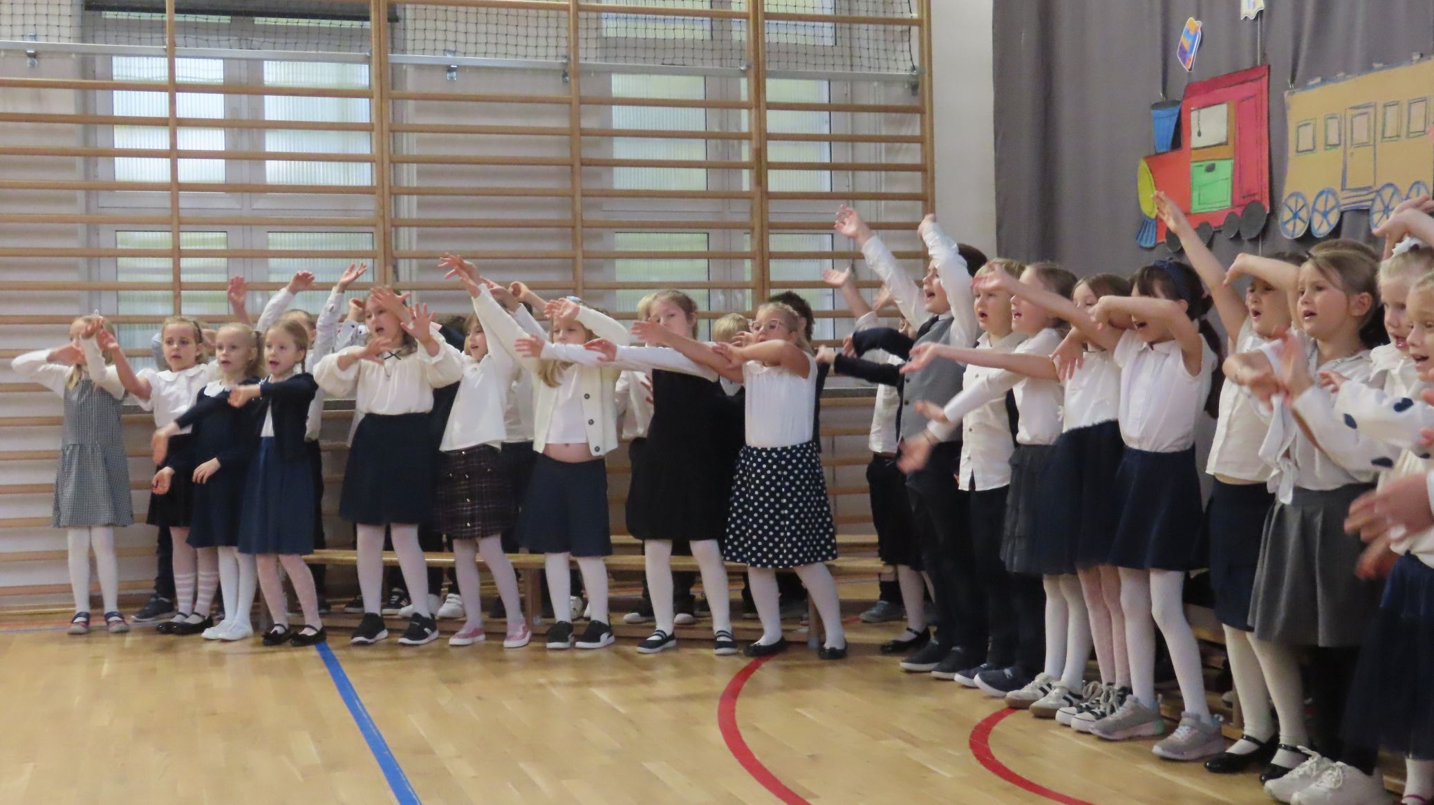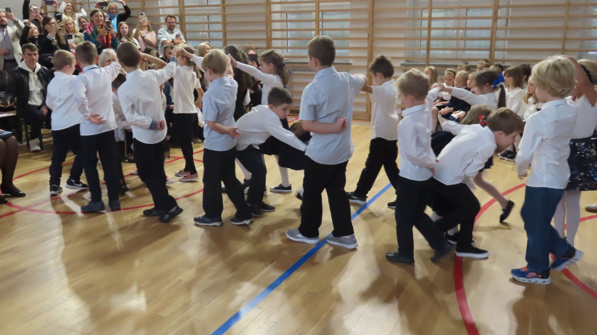 Nie zabrakło też części artystycznej - pierwszoklasiści wykazali się umiejętnościami recytacji wierszyków i śpiewu piosenek. Wspaniale zaprezentowali także nasz taniec narodowy - polonez. Występy uczniów spotkały się z entuzjazmem i aprobatą publiczności. Cała uroczystość zakończyła się wspólnym zdjęciem, zasadzeniem symbolicznych krzewów forsycji i słodkim poczęstunkiem. Ten dzień na długo pozostanie w pamięci naszych uczniów - był pełen wzruszeń, radości i dumy.
