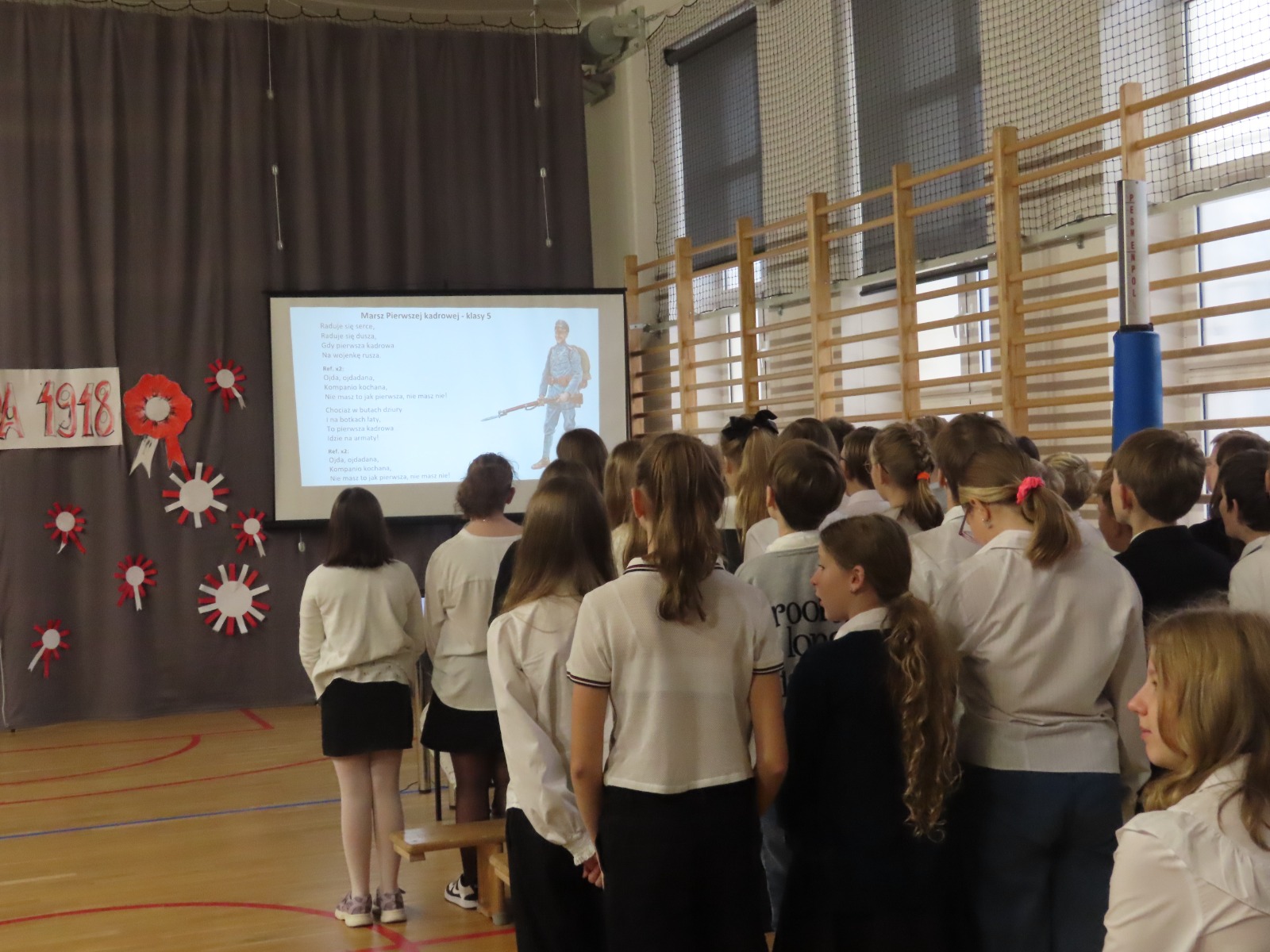 Uczniowie klas V–VIII przygotowali koncert pieśni legionowych, który wprowadził wszystkich w nastrój zadumy i refleksji nad historią naszej Ojczyzny. Szkolnym obchodom Święta Niepodległości towarzyszy kiermasz ciast patriotycznych.