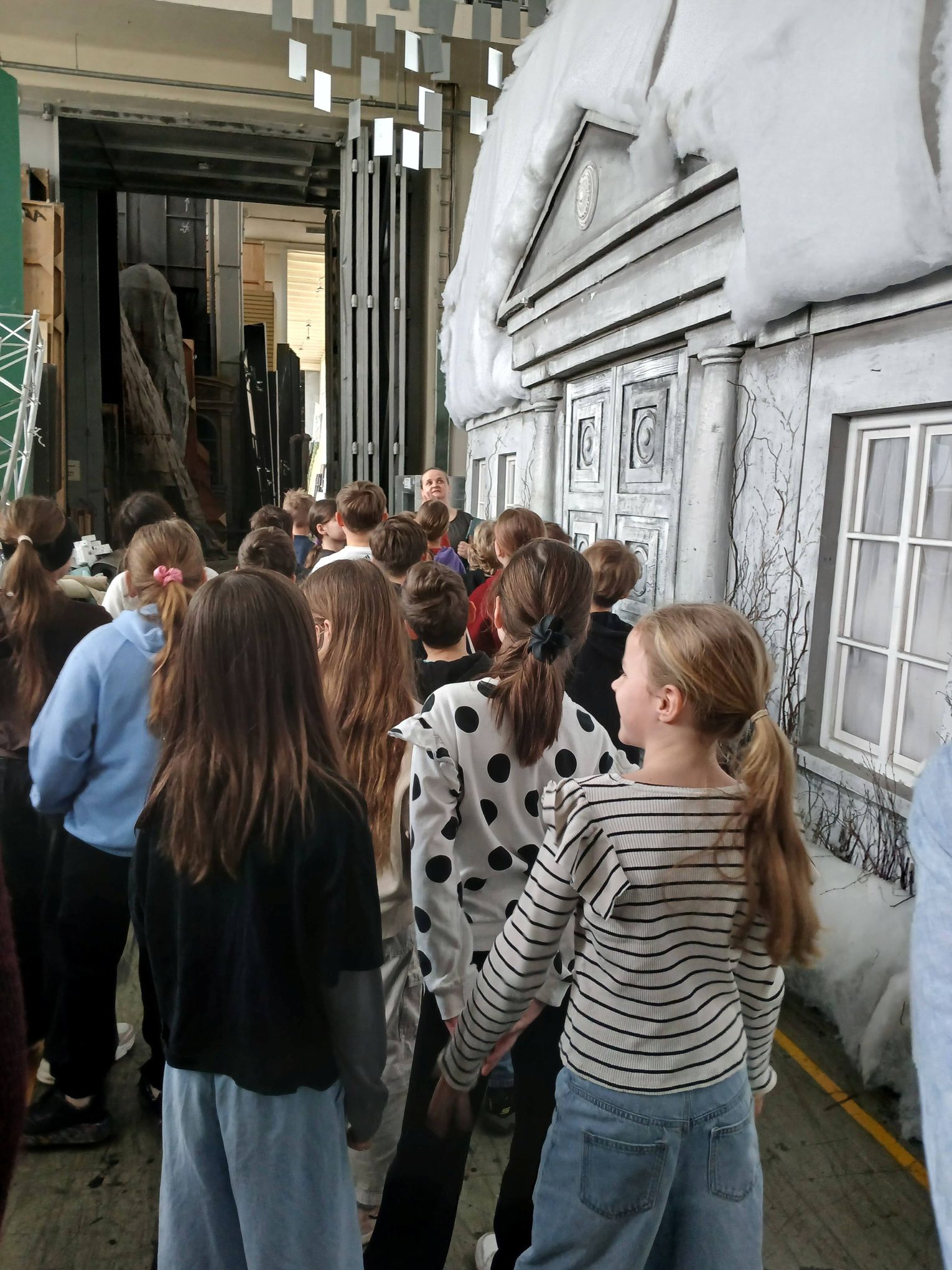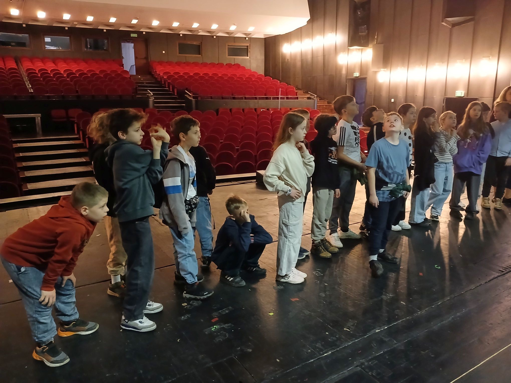 Podczas wizyty w Teatrze Wielkim mieliśmy okazję zobaczyć, jak zbudowana jest scena, ile posiada platform i zapadni. Obserwowaliśmy również montaż dekoracji do nowego przedstawienia. Dowiedzieliśmy się, z czego wykonane są elementy scenografii oraz czym zajmuje się malarnia teatralna.