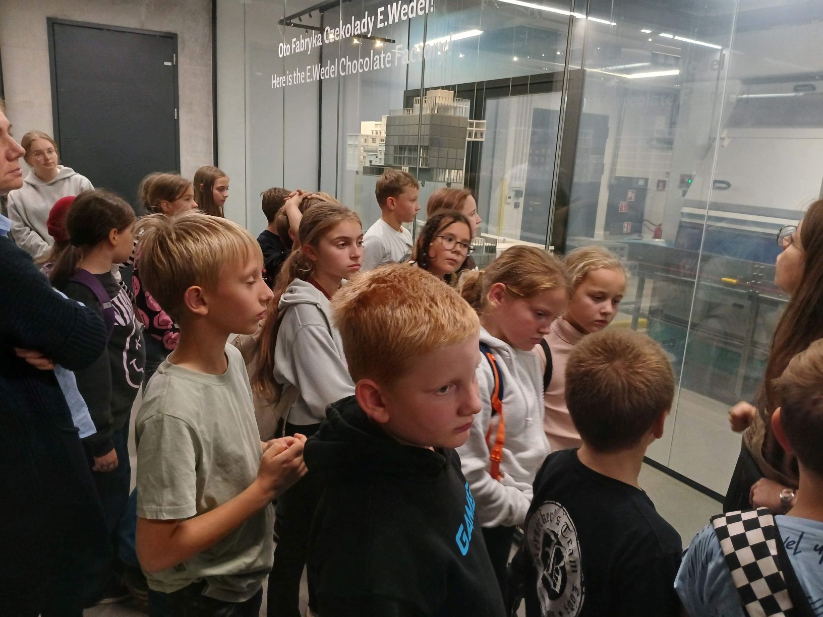 Następnie podziwialiśmy przepiękną panoramę tego królewskiego miasta z trzydziestego piętra Pałacu Kultury i Nauki. Ostatnim punktem naszej wycieczki była Fabryka Czekolady E. Wedel. Mogliśmy poznać kolejne etapy produkcji czekolady we wspaniale przygotowanych, nowoczesnych salach multimedialnych.