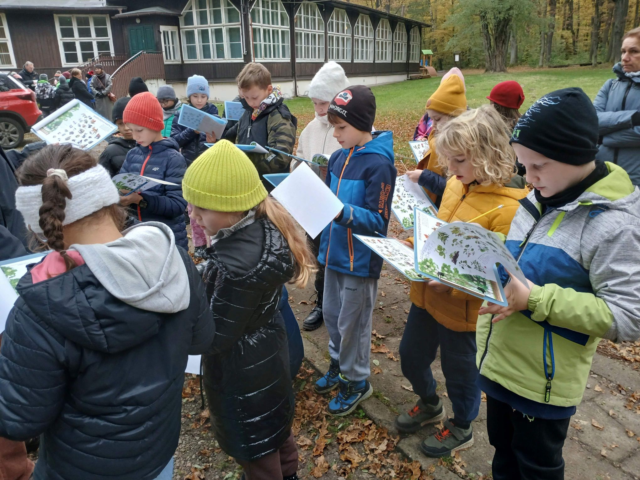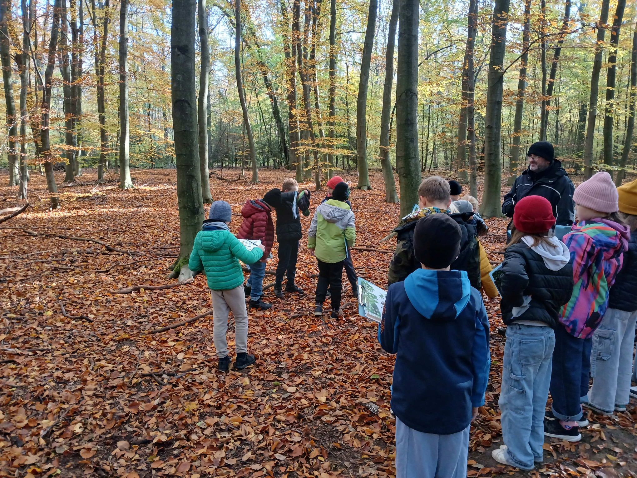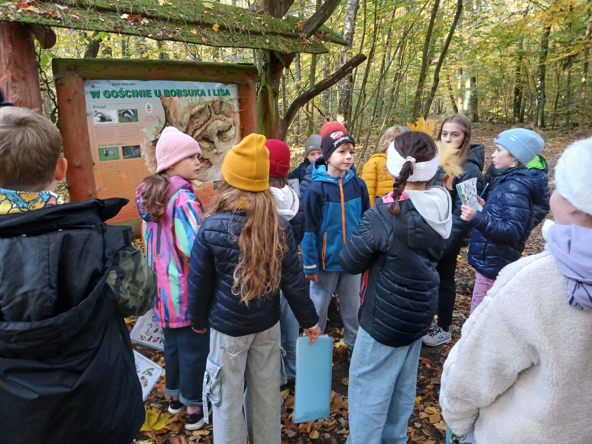 Zajęcia przebiegały w malowniczym otoczeniu lasu w jesiennej szacie. Uczniowie przypisywali różnorodne gatunki drzew, krzewów i roślin oraz zwierząt do poszczególnych warstw lasu, poznając ich cechy i warunki życia. To były ciekawe zajęcia.