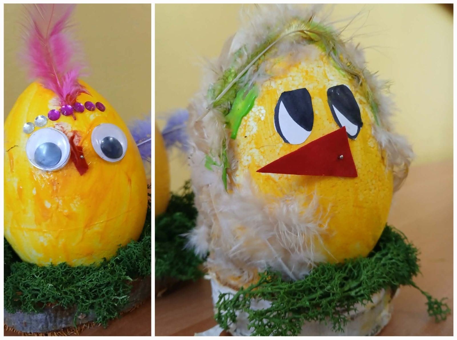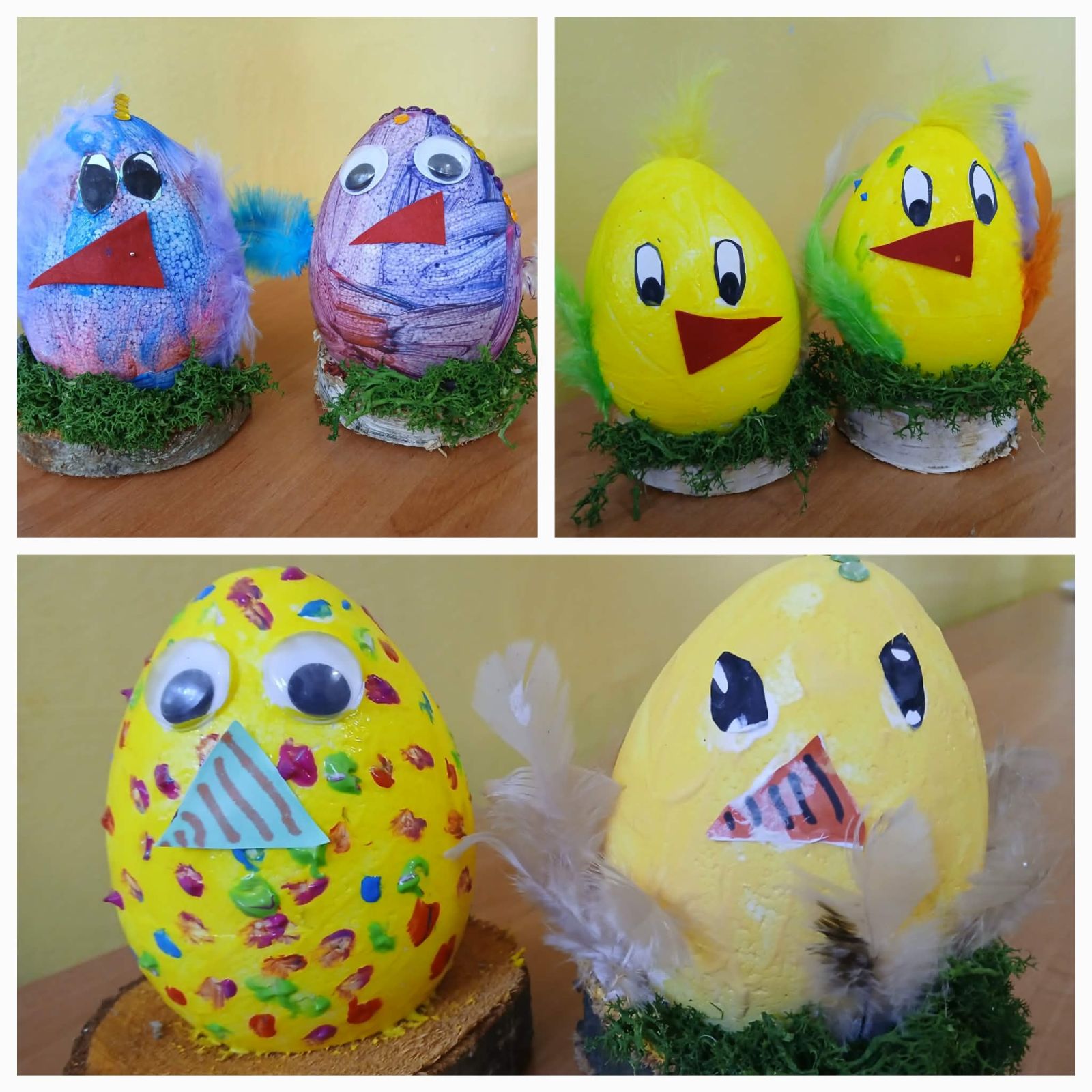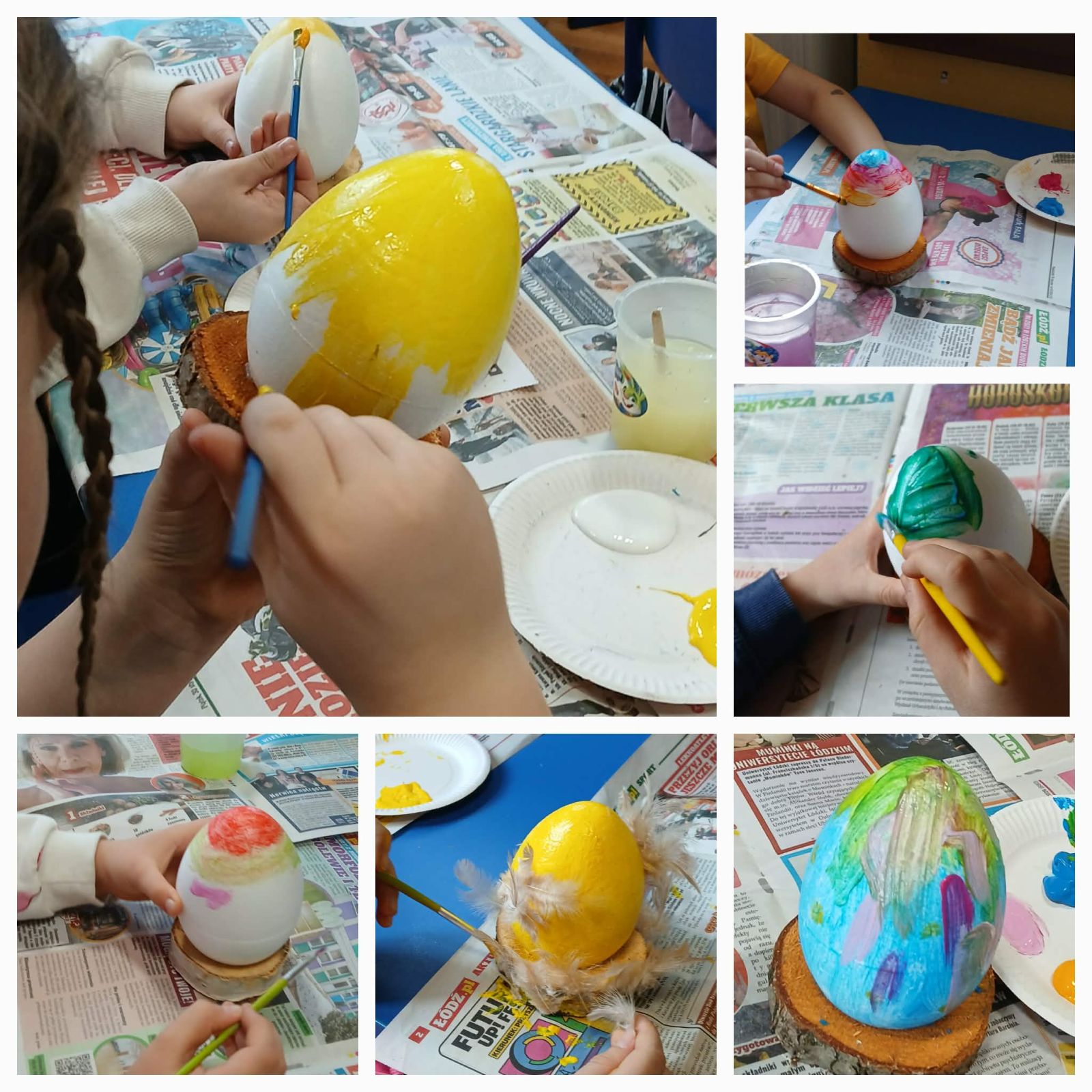 Podczas zajęć uczniowie wykonali urocze kurczaczki z jajek styropianowych. Najpierw malowali je farbami, dobierając różnorodne, wiosenne kolory, a następnie ozdabiali je piórkami, tworząc wyjątkowe i niepowtarzalne prace. Zajęcia sprzyjały rozwijaniu kreatywności, precyzji oraz dawały dzieciom wiele radości i satysfakcji z własnoręcznie wykonanych ozdób.