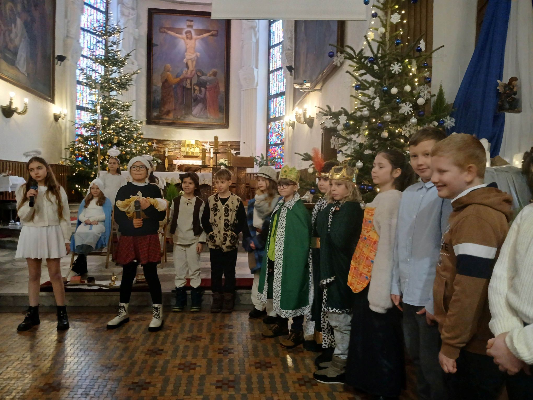 Uczniowie klasy IIIa zaprezentowali w Kościele Opatrzności Bożej przedstawienie jasełkowe pt. „Historia cudownej nocy”.